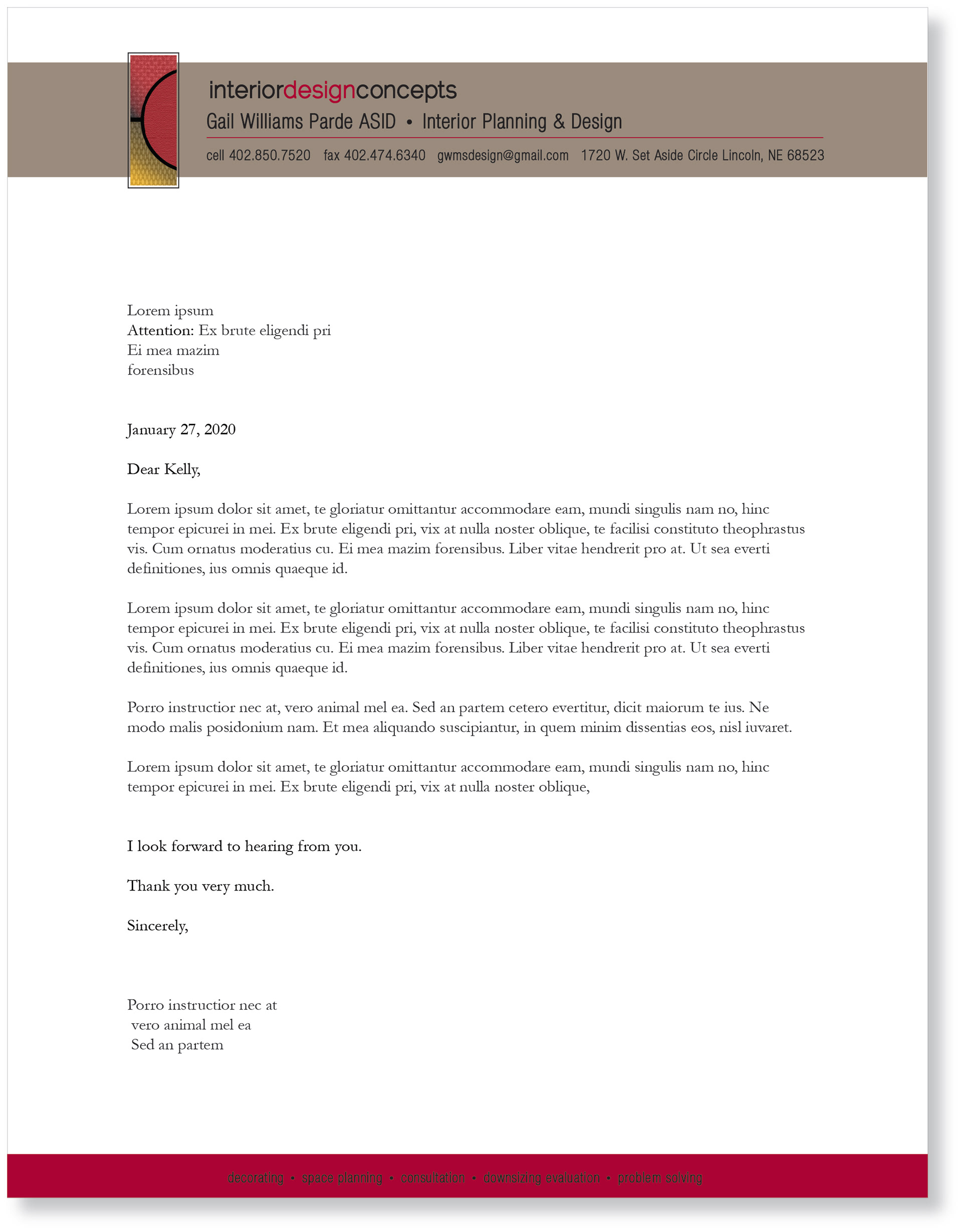 Logo, business card, letterhead and website. Designed for a local interior designer.
