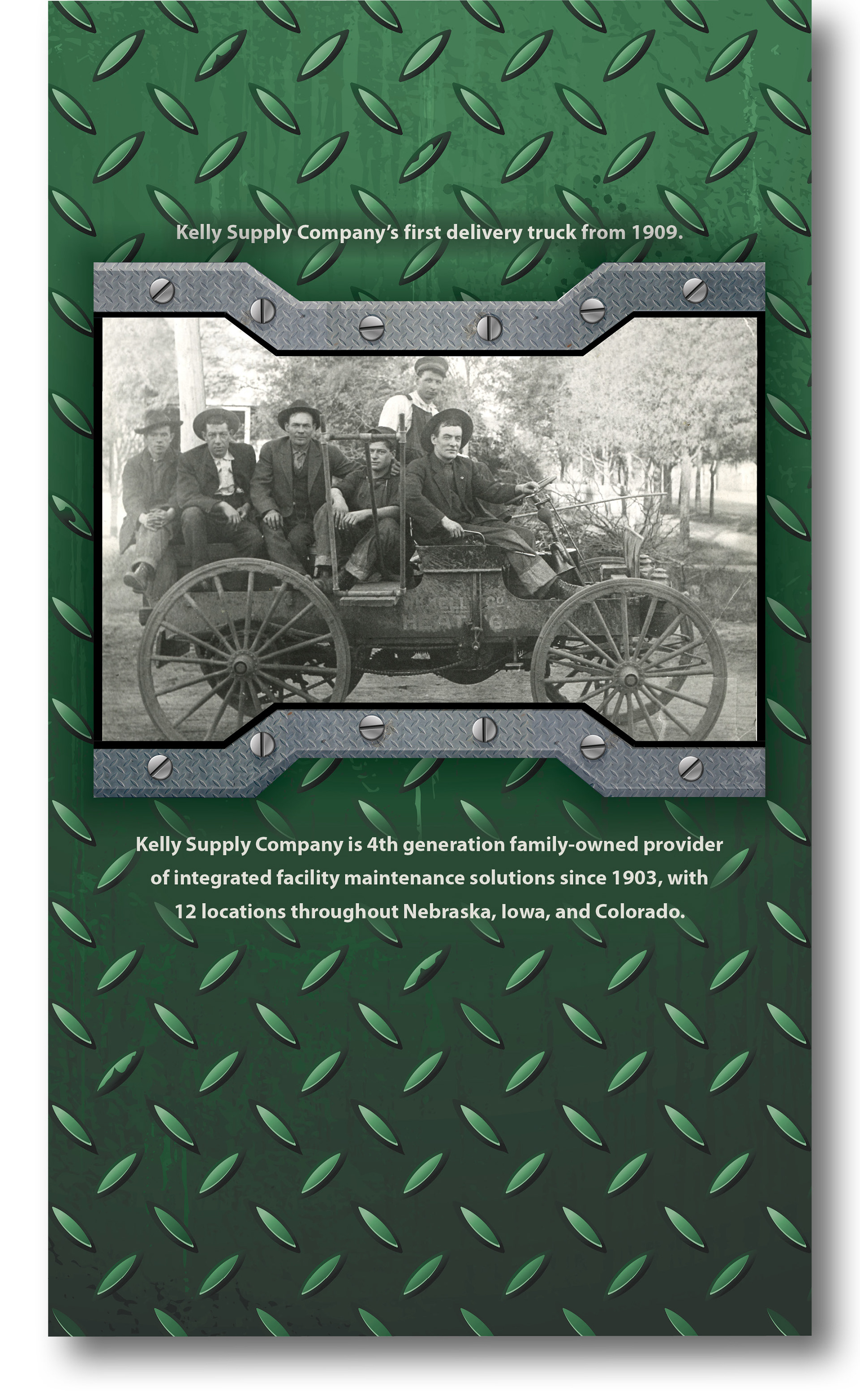 Brochure exterior highlighting products and history. Designed for a family-owned supply company.