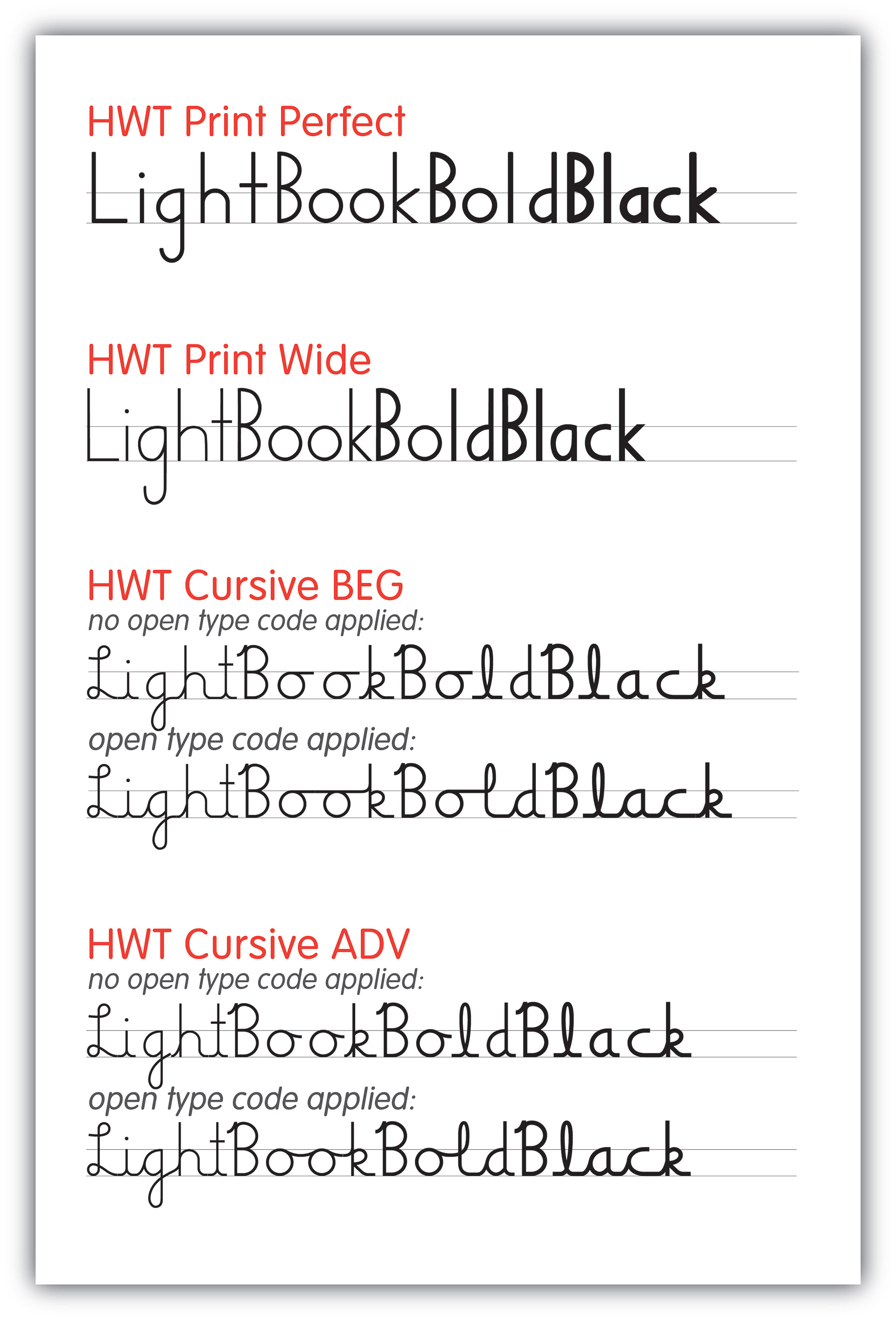 Digitized fonts produced from hand-drawn letters. Designed for a national handwriting company.
